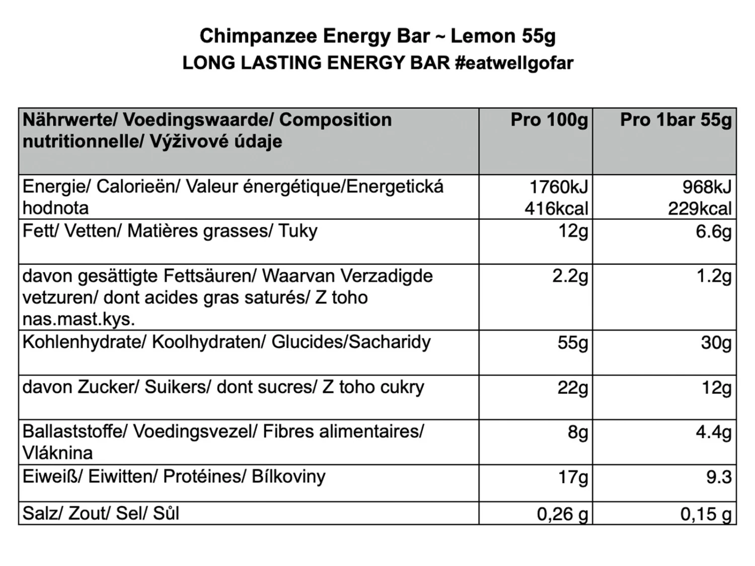 Barre énergétique Chimpanzee au goût rafraîchissant de citron. Simple, délicieux et plein d’énergie. Tous les ingrédients naturels, fait de vrais aliments. Contient une grande quantité de protéines et est une source d’énergie durable.